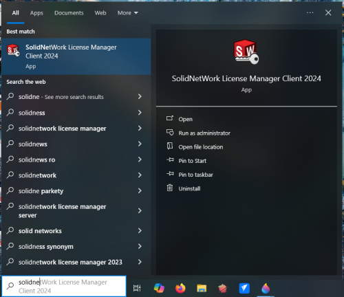 Start the application "SolidNetWork License Manager Client"
