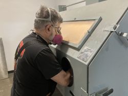 11. Stick hands into rubber gloves, grasp blasting gun and step on the foot pedal to BLAST!!!