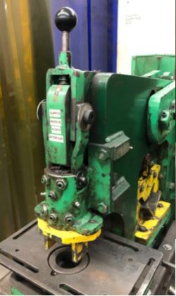 The Ironworker is a combination shear and punch actuated by a powerful hydraulic ram. There are stages for shearing plate, angle, and a punching station.